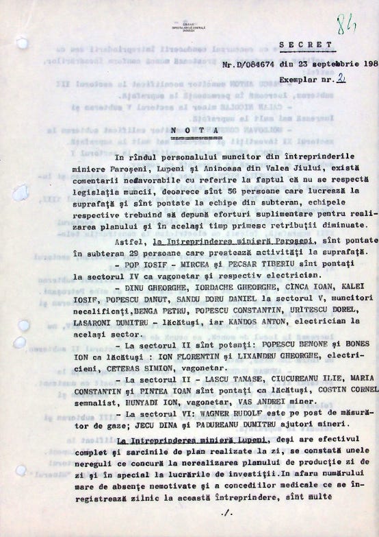 Cu ajutorul a două documente din arhivele C.N.S.A.S., pot atât cât mă pricep, să trasez un arc peste timp în problema pontajelor fictive la minele din Valea Jiului. Nu o să fiu ipocrit să spun că în perioada în care am lucrat și eu în domeniu, acest lucru nu s-a întâmplat. Sunt unele precizări care ar trebui însă făcute. Sunt mai multe tipuri de persoane care au fost de-a lungul timpului pontate fictiv. O să încerc să mă opresc la câteva, care se regăsesc și în documentele pe care le voi prezenta și pe care le-am întâlnit și eu în decursul timpului.