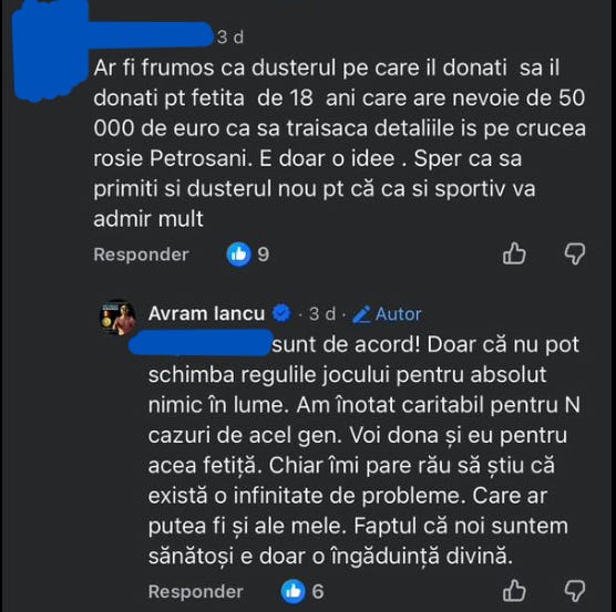 Postarea inițială a generat bineînțeles reacții pe pagina domniei sale. A răspuns, din câte am văzut, cu tact fiecăreia, fie ea negativă sau pozitivă. I-am făcut și eu o sugestie de transparență, pe un mesaj privat, (suntem prieteni pe Facebook) sugerându-i desfășurarea campaniei pe o platformă dedicată, în care să vadă oamenii sumele date și totalul sumei adunate în timp real. Mi-a răspuns după o zi, două și a declinat ideea din varii motive. Ulterior campania a devenit o știre pentru presa locală și chiar pentru Gazeta Sporturilor. Mă rog, în preziua tragerii la sorți, 18 februarie, ziua de naștere a dânsului, ora 9:32, domnul Iancu avea donată de la 476 de persoane suma de 12.500 de euro din cei 19.500 necesari. Strângerea de fonduri urma să se încheie la ora 18:00 cum stabilise în regulament și relatează în postare. Deci în medie a strâns în jur de 520 de euro și a avut cam 19 donatori în fiecare zi, ceea ce era impresionant dar nu suficient.[2]
